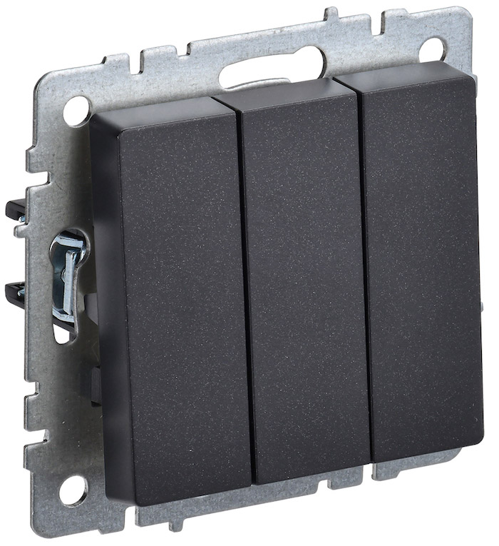 Выключатель BRITE, трехклавишный, без подсветки, цвет - черный