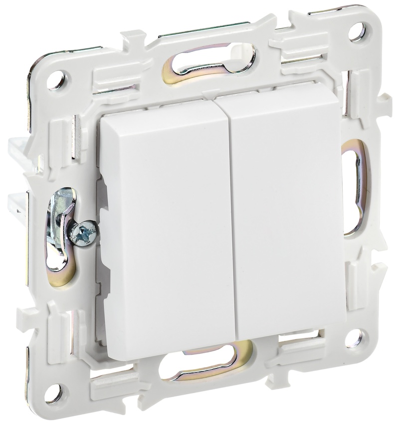 Выключатель Skandy, двухклавишный, с подсветкой, цвет - белый