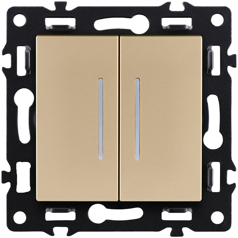 Выключатель Asthetik, двухклавишный, с подсветкой, цвет - золотой