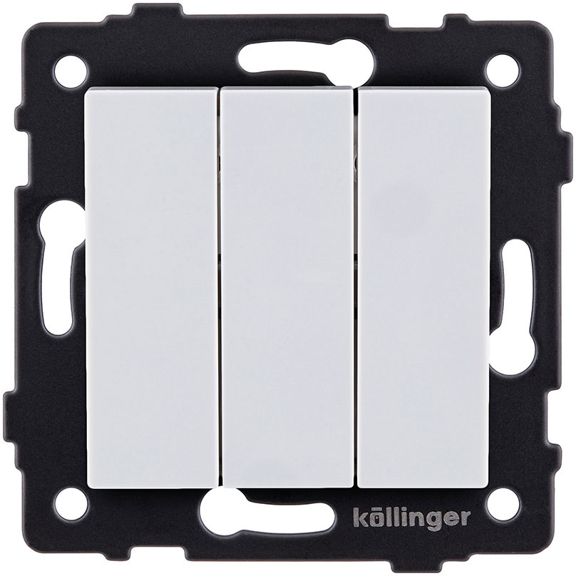 Выключатель с плоской клавишей Aspekt, Eleganz, Reflex, трехклавишный, без подсветки, цвет - белый