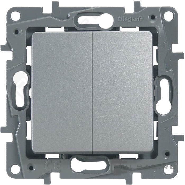 Кнопка П.К. Etika, одноклавишный, без подсветки, цвет - алюминий