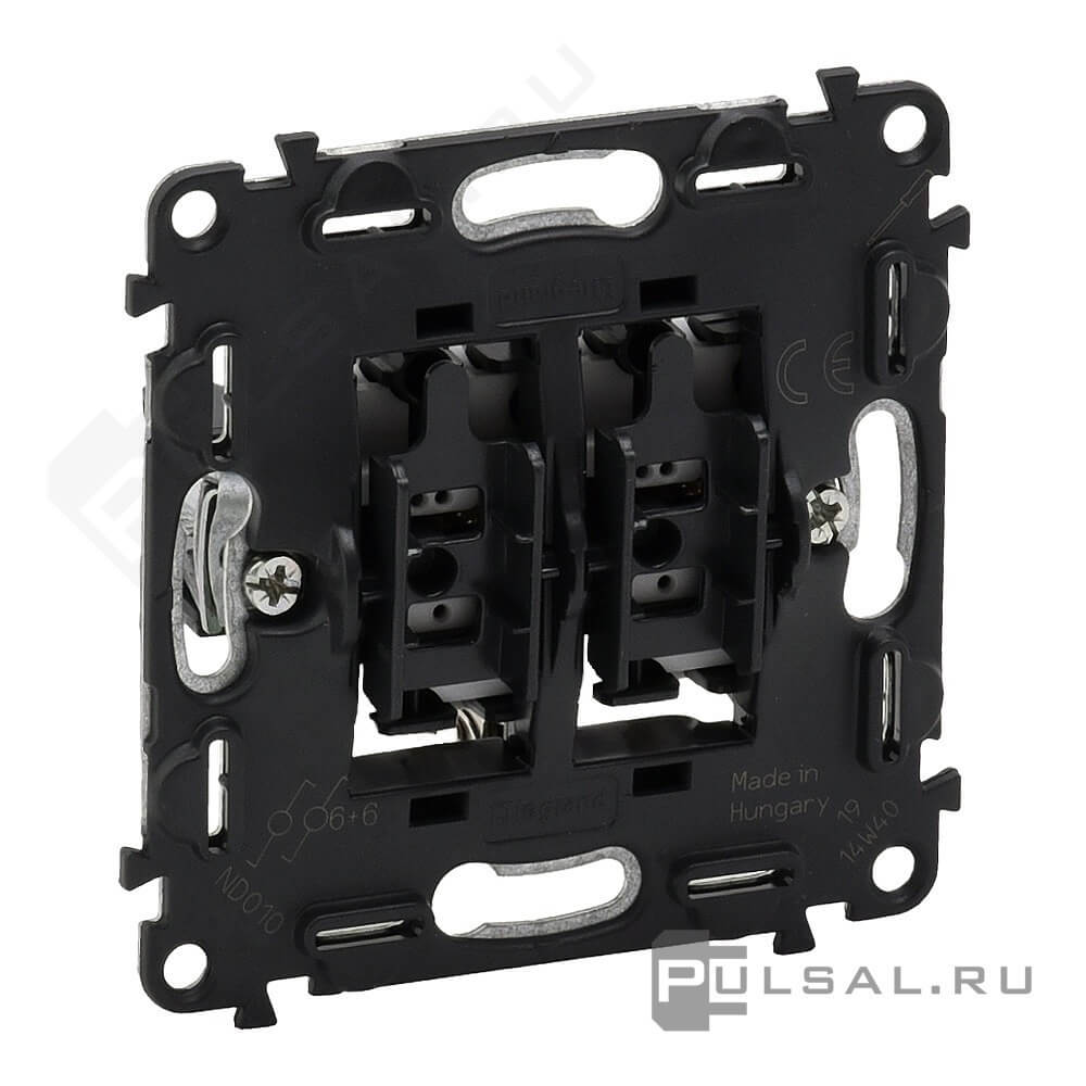 Клавиши для выключателей/переключателей и кнопок Valena Allure, двухклавишный, без подсветки, цвет - матовый черный