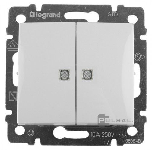 Выключатель Valena, двухклавишный, с подсветкой, цвет - белый