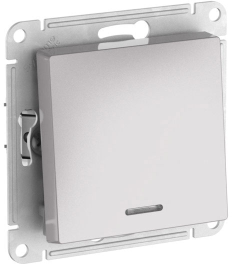 Выключатель (безвинтовые клеммы) Atlas Design Antique, AtlasDesign Air, Atlas Design, одноклавишный, с подсветкой, цвет - алюминий