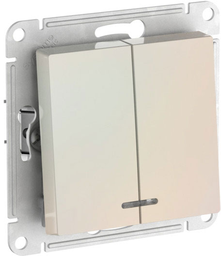 Выключатель (безвинтовые клеммы) Atlas Design Antique, AtlasDesign Air, Atlas Design, двухклавишный, с подсветкой, цвет - жемчуг