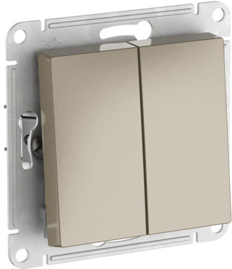 Выключатель (безвинтовые клеммы) Atlas Design Antique, AtlasDesign Air, Atlas Design, двухклавишный, без подсветки, цвет - шампань