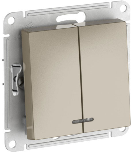 Выключатель (безвинтовые клеммы) Atlas Design Antique, AtlasDesign Air, Atlas Design, двухклавишный, с подсветкой, цвет - шампань