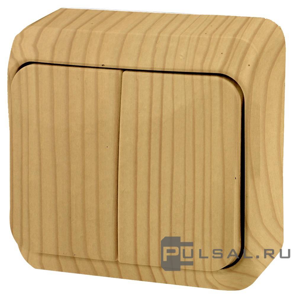 Выключатель Этюд, двухклавишный, с подсветкой, цвет - сосна