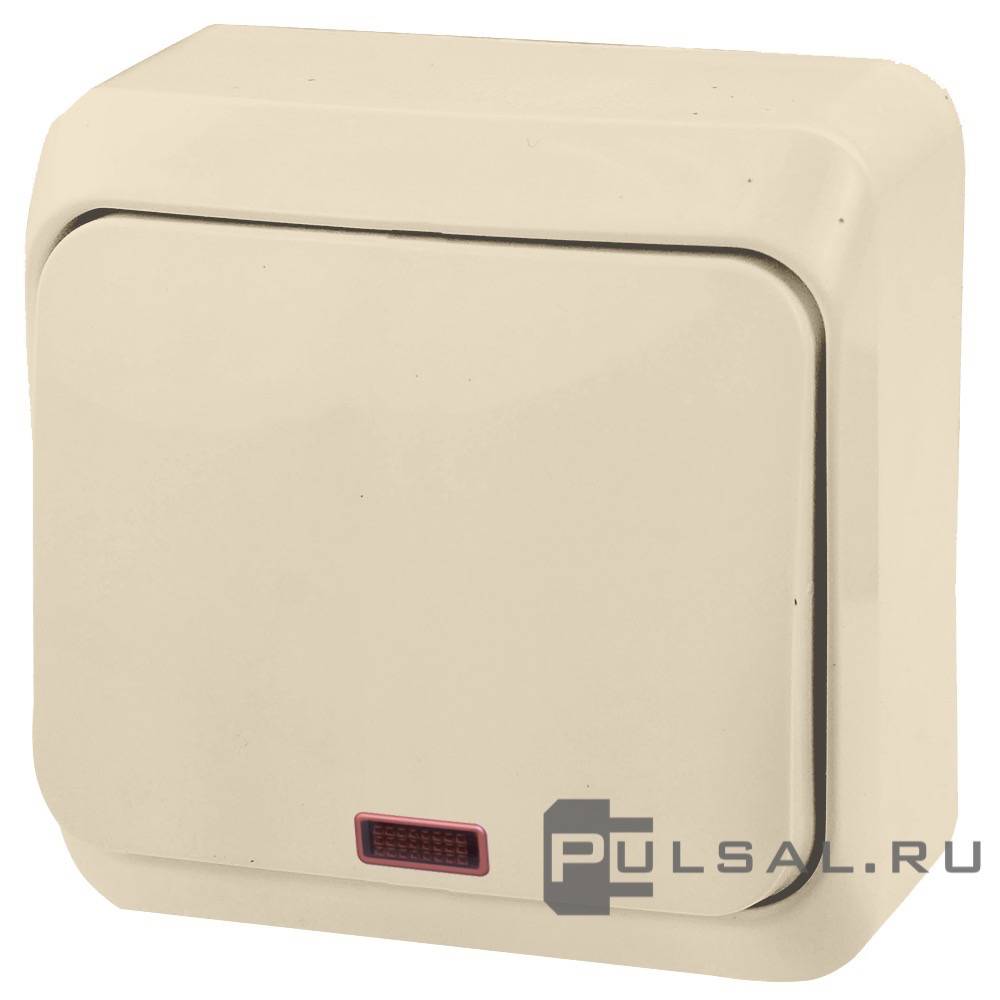 Выключатель с рамкой Этюд, одноклавишный, с подсветкой, цвет - кремовый