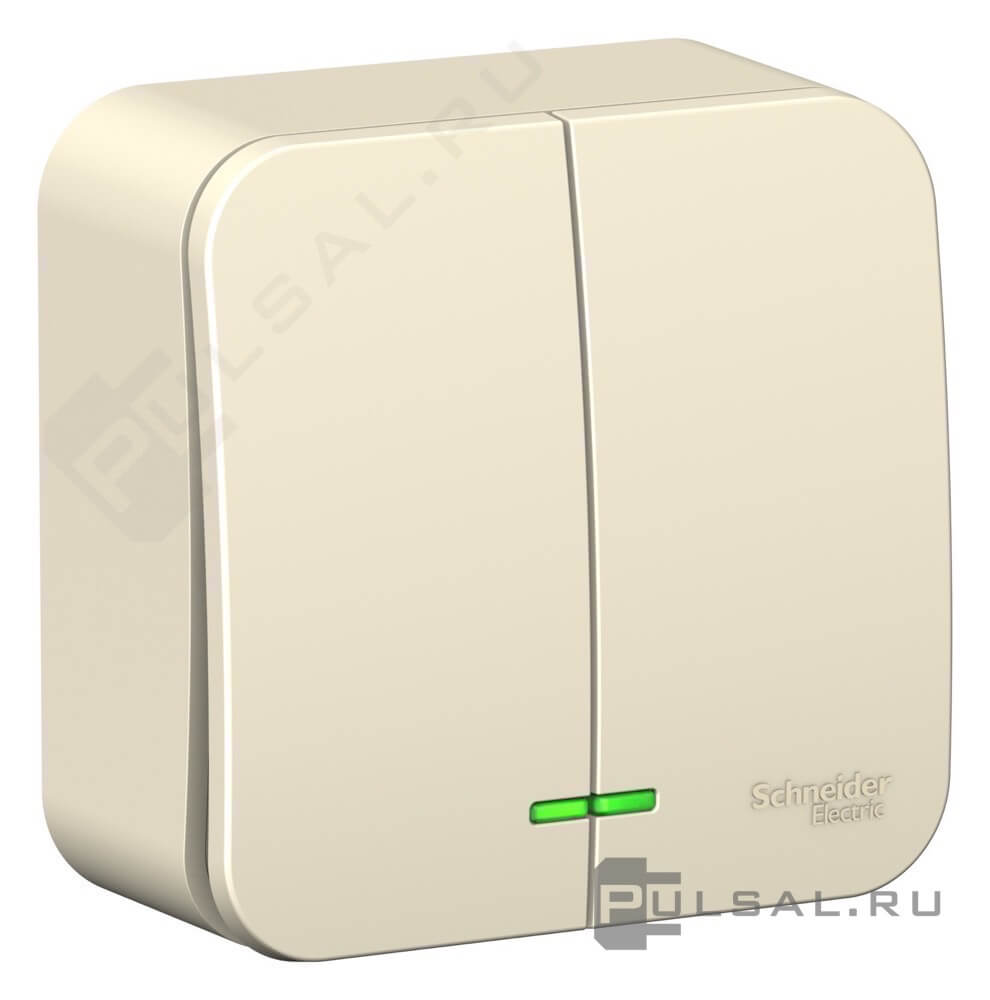 Выключатель 10А, с изолирующей пластиной Blanca, двухклавишный, с подсветкой, цвет - молочный