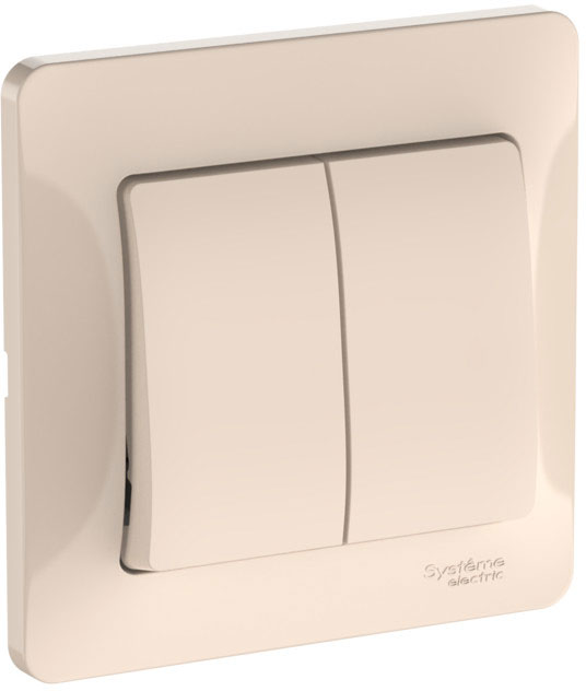 Выключатель Glossa, двухклавишный, без подсветки, цвет - бежевый