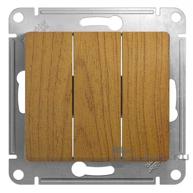 Переключатель Glossa, двухклавишный, без подсветки, цвет - дуб