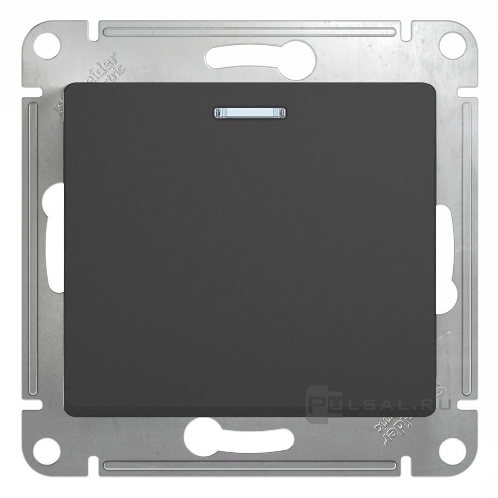 Выключатель Glossa, одноклавишный, с подсветкой, цвет - антрацит