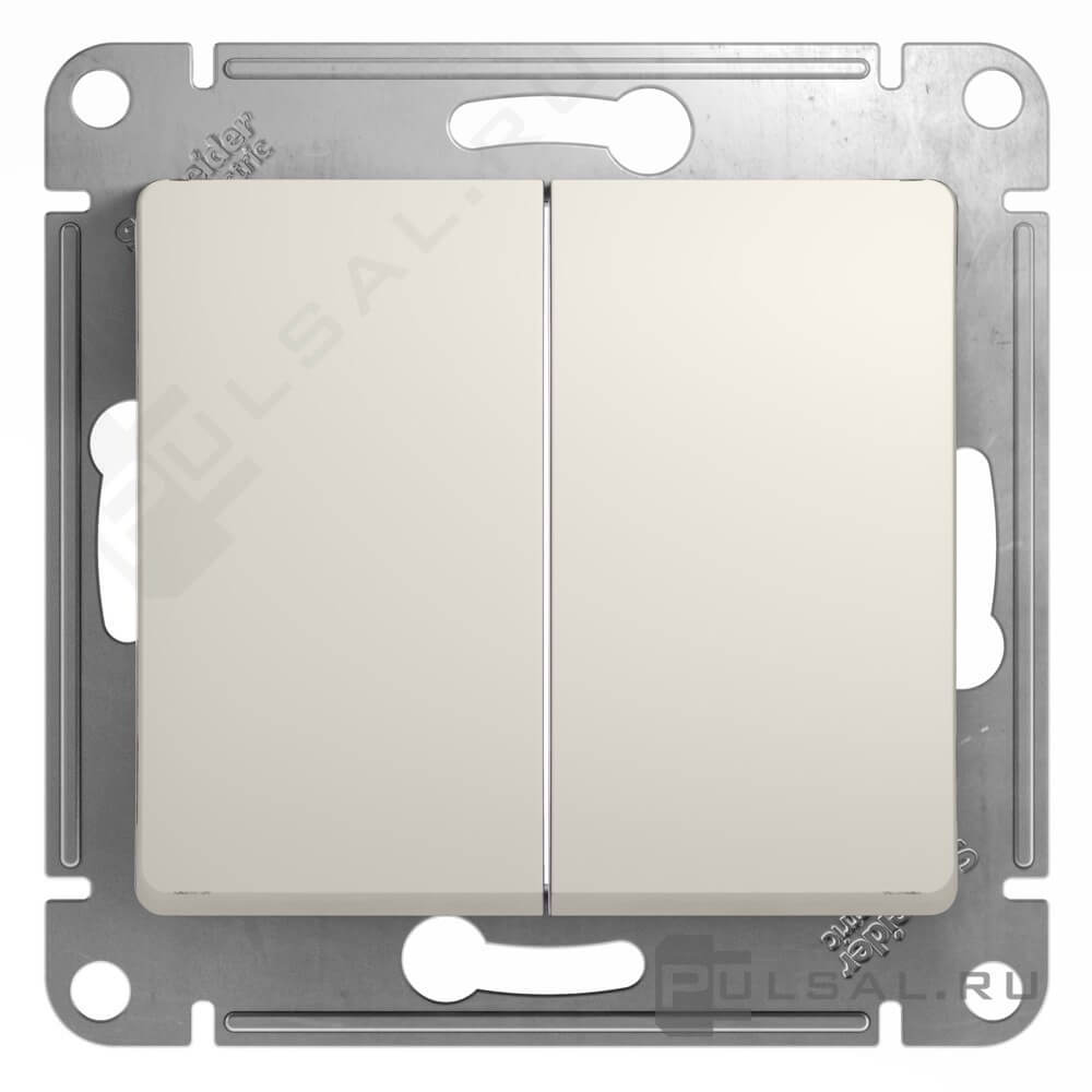 Выключатель Glossa, двухклавишный, без подсветки, цвет - молочный