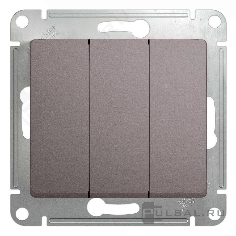 Выключатель Glossa, трехклавишный, без подсветки, цвет - платина