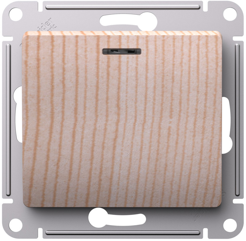 Выключатель Glossa, одноклавишный, с подсветкой, цвет - сосна