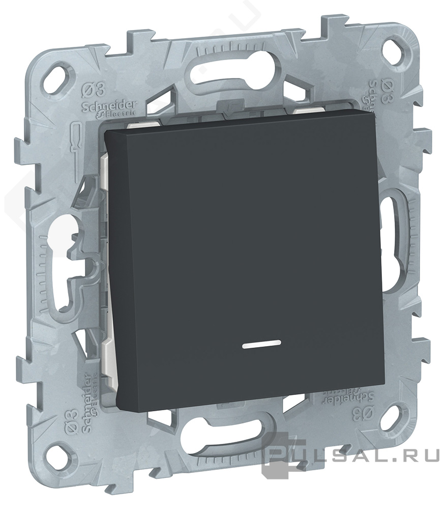 Выключатель Unica New Pure, Unica New Studio, одноклавишный, с подсветкой, цвет - антрацит