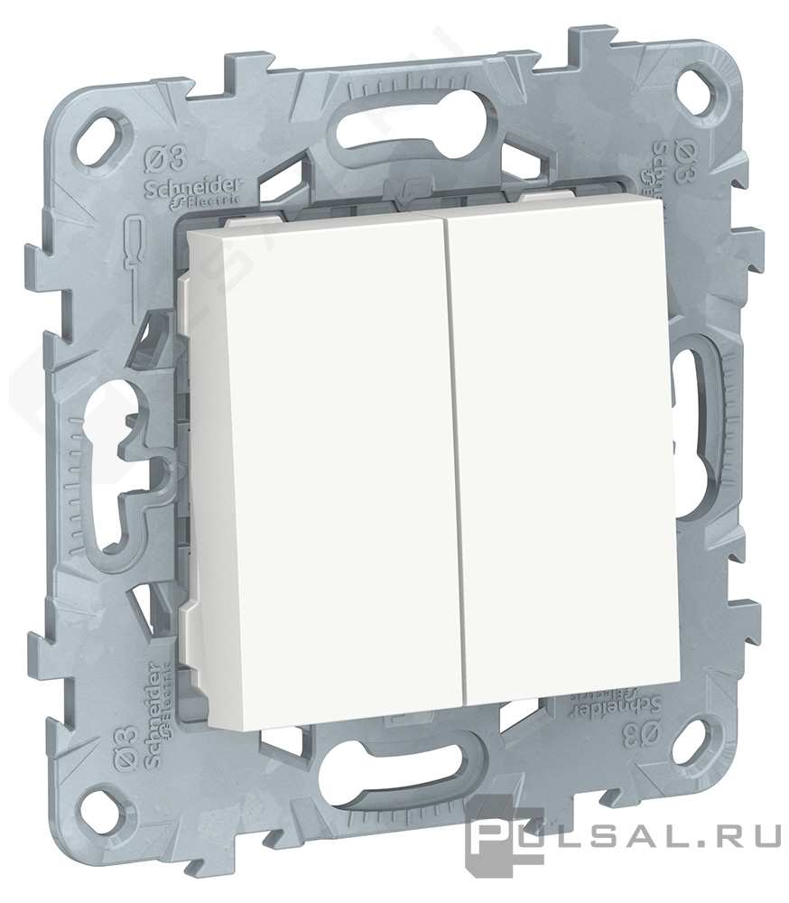 Зарядка USB, 2, 1А Unica New Pure, Unica New Studio, USB type-A 5V, двойная, цвет - белый