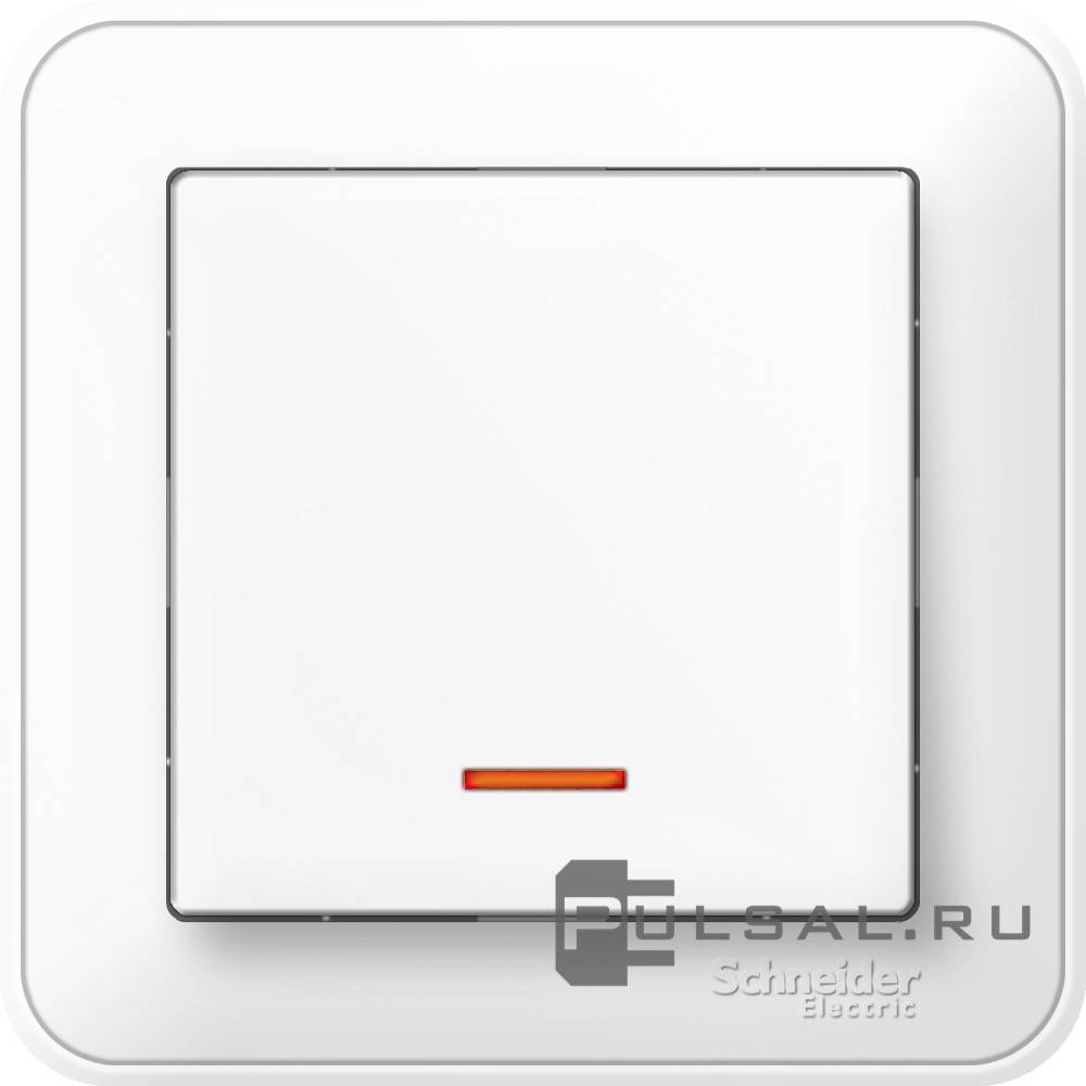 Выключатель двухполюсный 10А W59, одноклавишный, без подсветки, цвет - белый