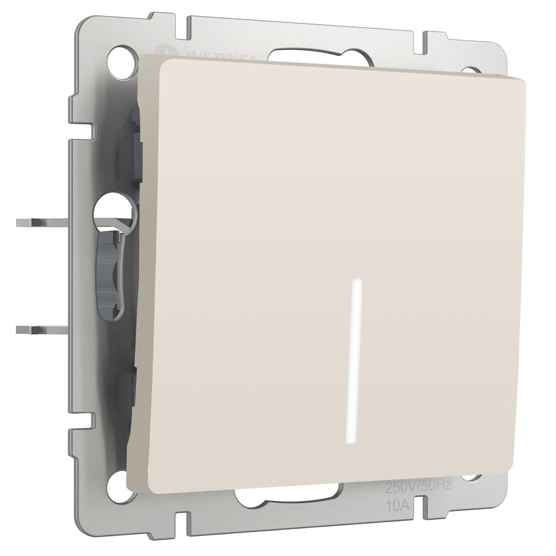 Переключатель Alumax, Split, Slab, Senso, Baguette, Acrylic, Platinum, Elite, Snabb, Stream, Flock, Stark, Fiore, Favorit, Diamant, Aluminium, Antik, Metallic, одноклавишный, с подсветкой, цвет - айвори матовый