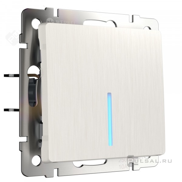 Переключатель Alumax, Split, Slab, Senso, Baguette, Acrylic, Platinum, Elite, Snabb, Stream, Flock, Stark, Fiore, Favorit, Diamant, Aluminium, Antik, Metallic, одноклавишный, с подсветкой, цвет - перламутр рифленый