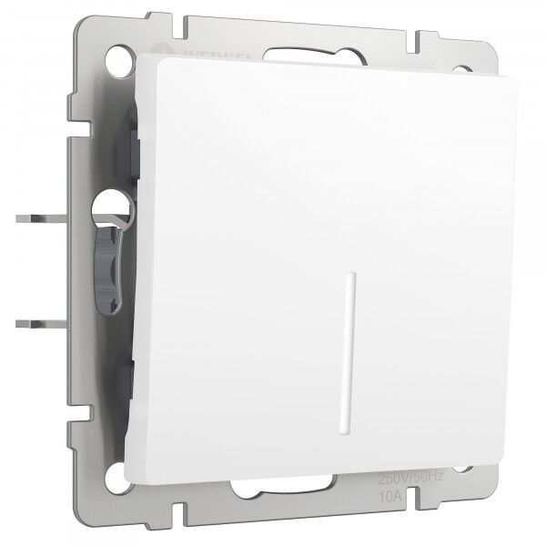 Переключатель Alumax, Split, Slab, Senso, Baguette, Acrylic, Platinum, Elite, Snabb, Stream, Flock, Stark, Fiore, Favorit, Diamant, Aluminium, Antik, Metallic, одноклавишный, с подсветкой, цвет - белый матовый