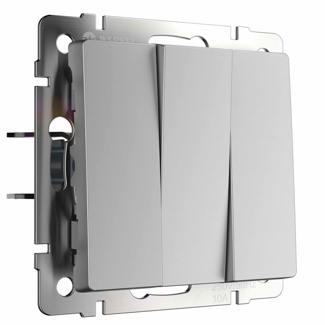 Переключатель Alumax, Split, Slab, Senso, Baguette, Acrylic, Platinum, Elite, Snabb, Stream, Flock, Stark, Fiore, Favorit, Diamant, Aluminium, Antik, Metallic, одноклавишный, без подсветки, цвет - серебряный матовый