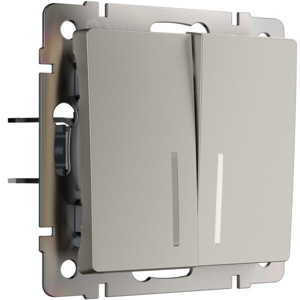 Переключатель Elite, Platinum, Acrylic, Baguette, Senso, Slab, Split, Alumax, Favorit, Aluminium, Antik, Metallic, двухклавишный, без подсветки, цвет - дымчатый