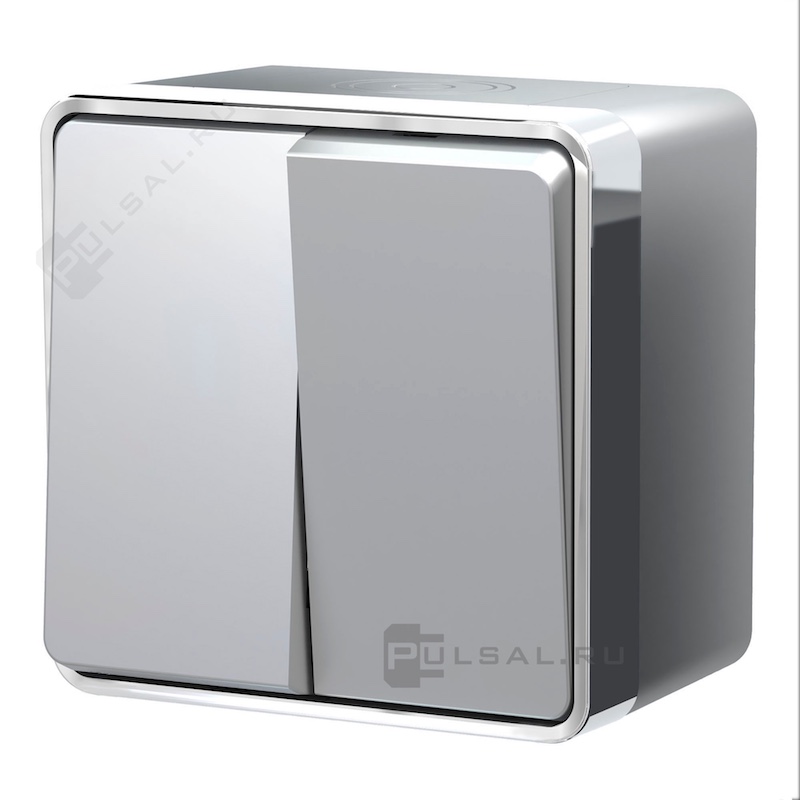 Выключатель Gallant, двухклавишный, с подсветкой, цвет - серебряный