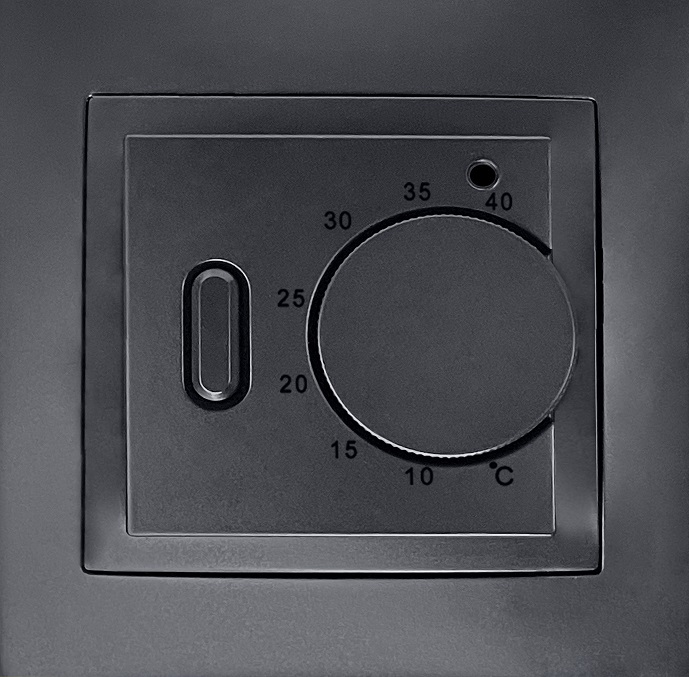 Термостат с датчиком пола, 16 A A07 NATURAL, A07, A07 WAVE, Универсальные устройства и механизмы, A07 NATURAL ROUND, поворотный, датчик t° пола (внешний), без таймера, цвет - черный