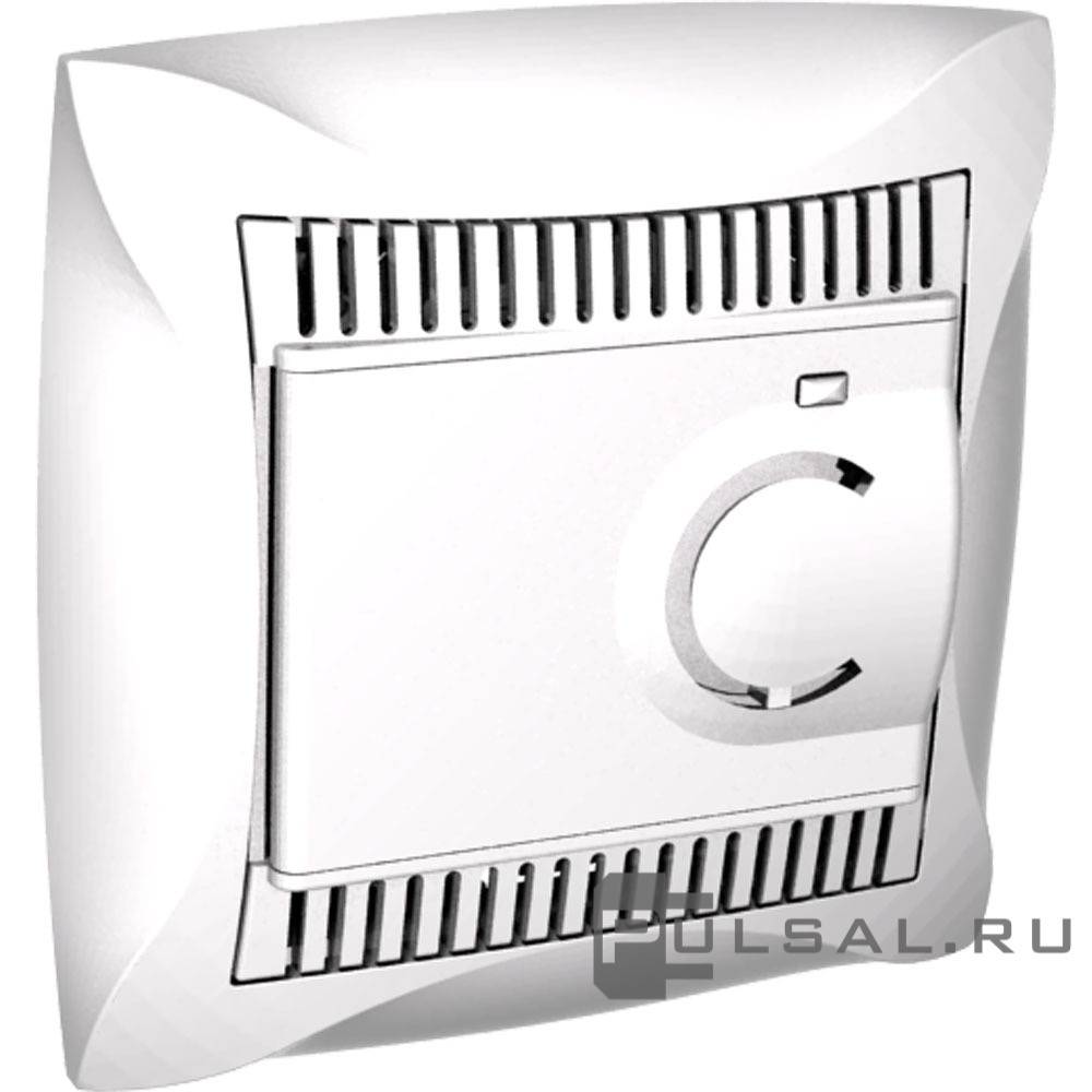 Терморегулятор 10А, НО-контакт, 230В Дуэт, поворотный, датчик t° пола (внешний), без таймера, цвет - белый