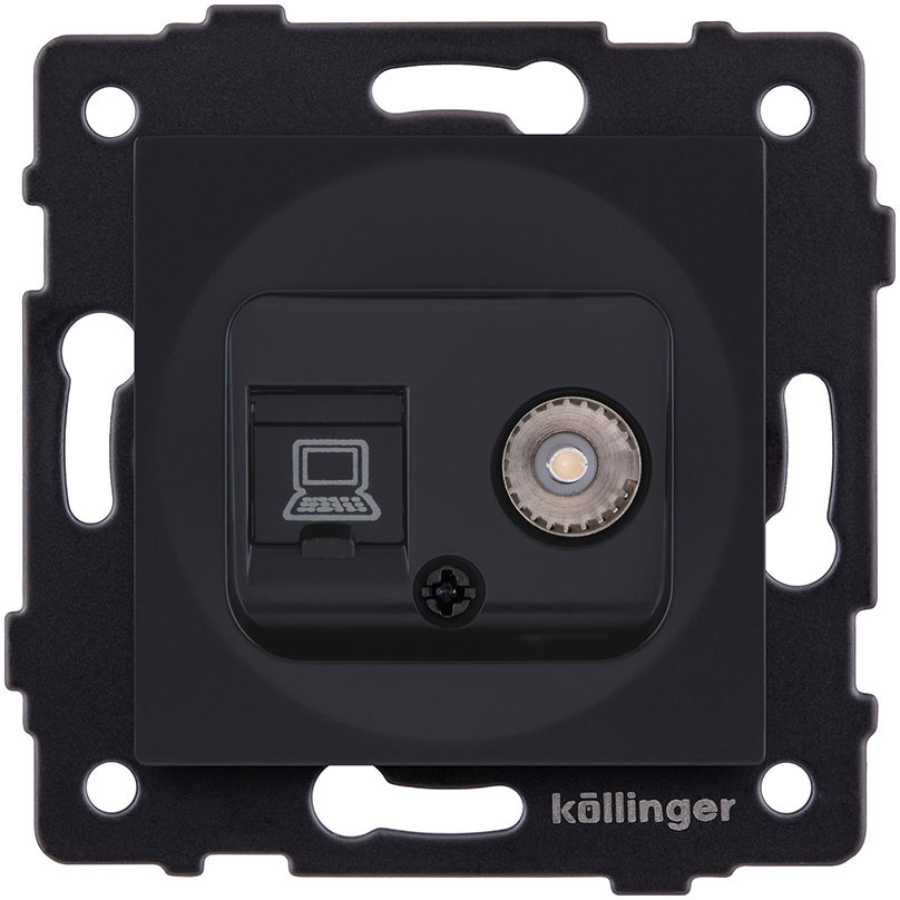 Розетка компьютерная RJ45 Cat.6 Aspekt, Eleganz, Reflex, одинарная, цвет - Чёрный матовый