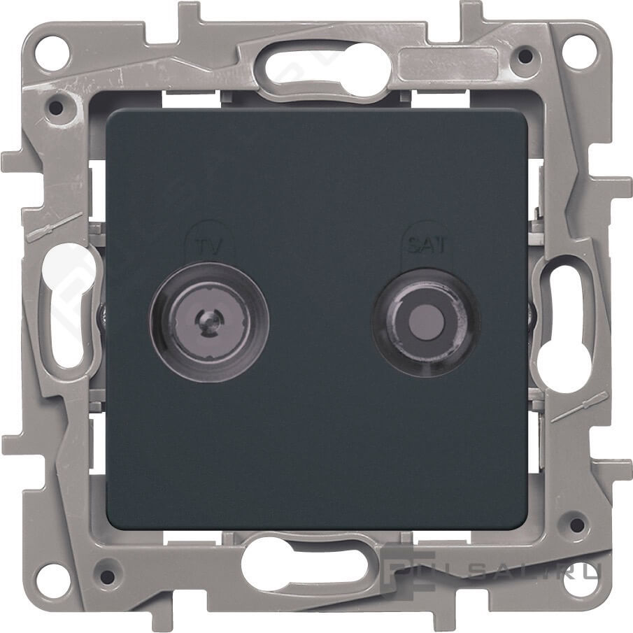 Розетка одиночная (двухкабельная) Etika, телевизионная (TV), спутниковая (SAT), двойная, цвет - антрацит