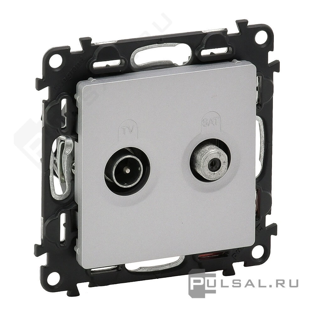 Розетка телефонная RJ11 Valena Life, двойная, цвет - алюминий