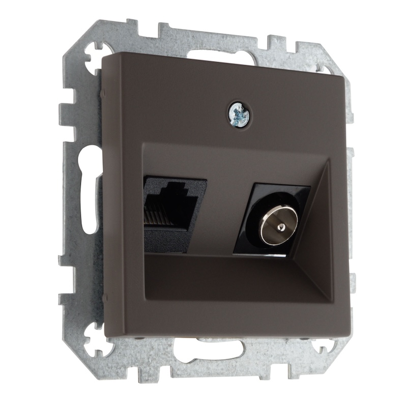 Розетка одиночная TV+RJ45 Epsilon, Retro Liregus, телевизионная (TV), одинарная, цвет - коричневый матовый