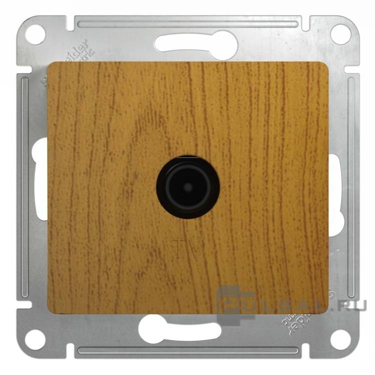 Розетка проходная 4 dB Glossa, телевизионная (TV), одинарная, цвет - дуб