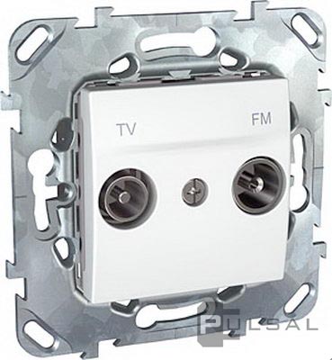 Розетка проходная 17 dB Unica Базовая, Unica Хамелеон, Unica Quadro, телевизионная (TV), радио (R), двойная, цвет - белый