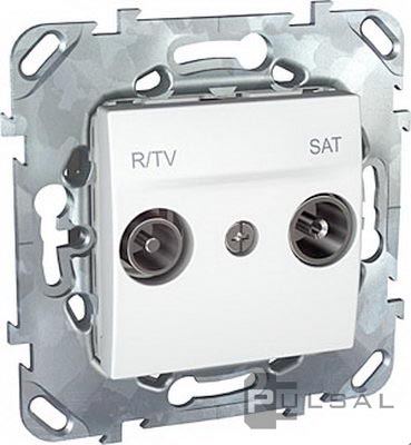 Розетка проходная 17 dB Unica Базовая, Unica Хамелеон, Unica Quadro, телевизионная (TV), радио (R), двойная, цвет - белый