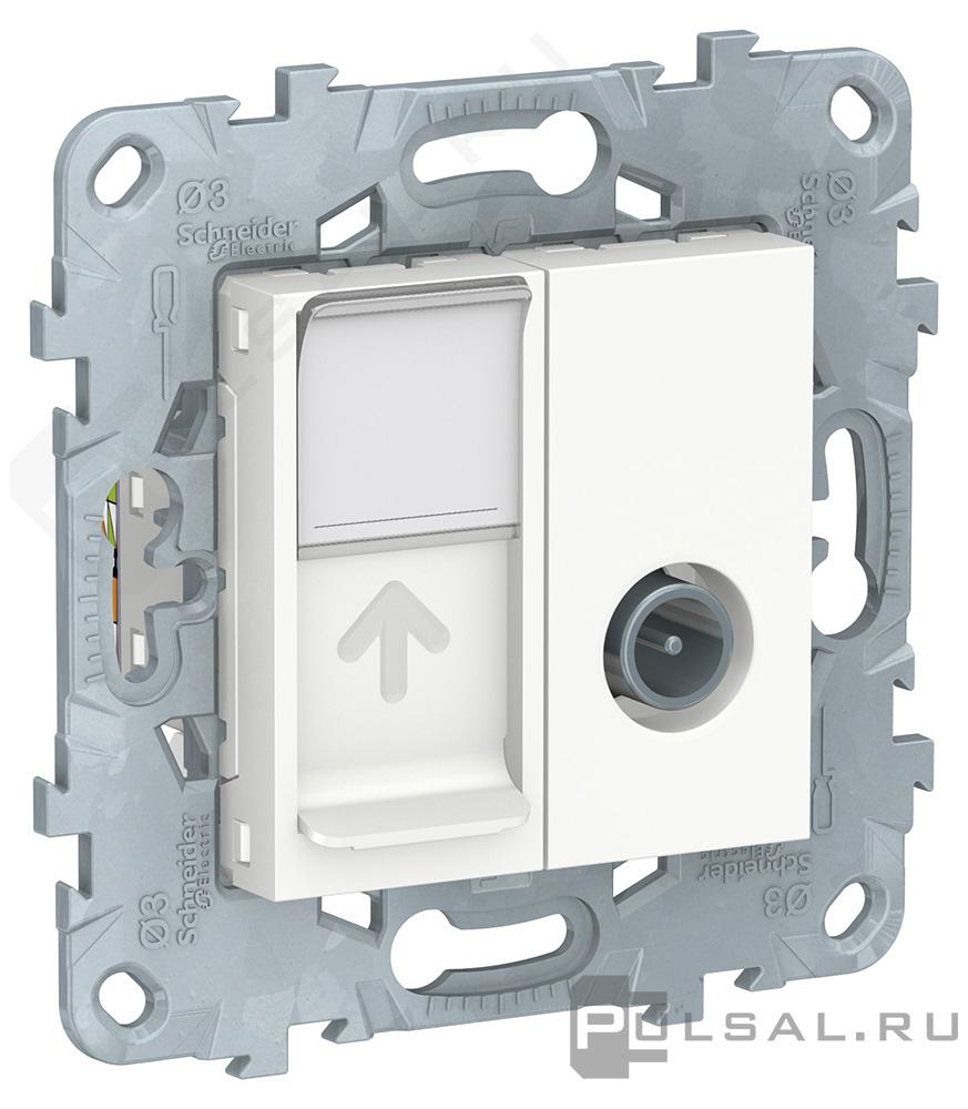 Розетка компьютерная RJ45 Cat.6 (UTP) Unica New Pure, Unica New Studio, одинарная, цвет - белый