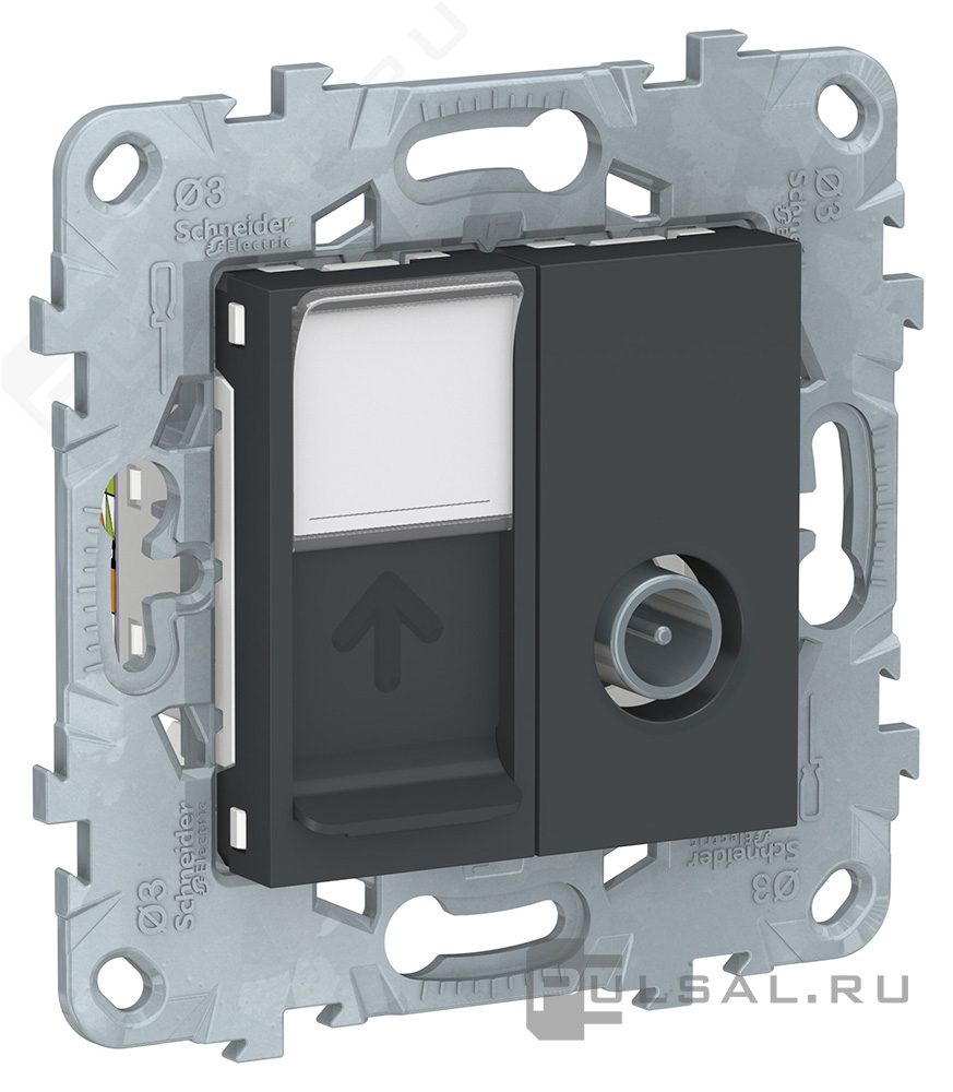 Розетка одиночная TV+RJ45 Unica New Pure, Unica New Studio, телевизионная (TV), одинарная, цвет - антрацит