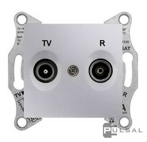 Розетка оконечная 1 dB Sedna, телевизионная (TV), радио (R), двойная, цвет - алюминий