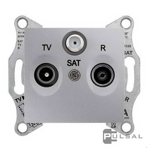 Розетка проходная 4 dB Sedna, телевизионная (TV), спутниковая (SAT), радио (R), тройная, цвет - алюминий