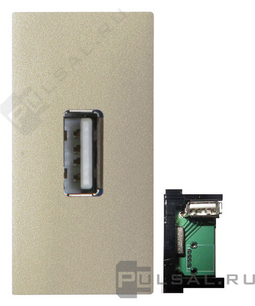 Розетка USB с разъемом под углом Zenit, USB данные, одинарная, цвет - шампань