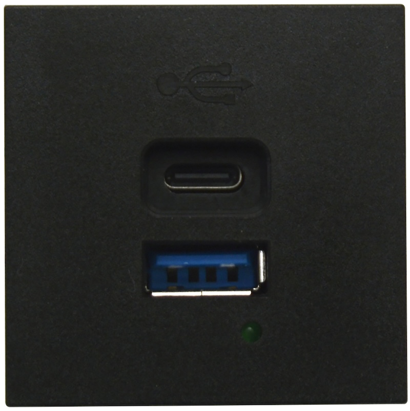 Зарядка USB 3.0A, 65W, quick charge Лючки DDSB, Лючки DFB, USB type-C 5V, USB type-A 5V, двойная, цвет - черный матовый