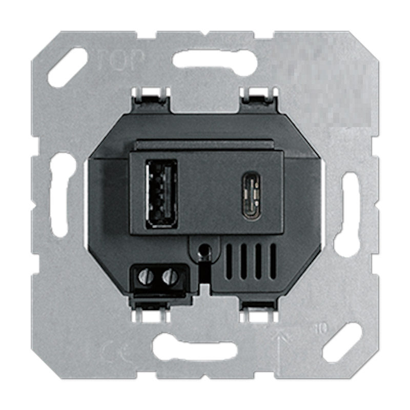 Механизм зарядки USB Type A+C, 3, 1А Универсальные устройства и механизмы, USB type-C 5V, USB type-A 5V, двойная, цвет - черный