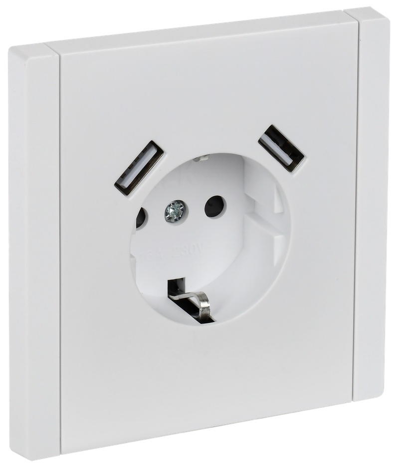 Розетка электрическая + USB А+А, 3,1 А FORTEPIANO, USB type-A 5V, двойная, цвет - белый