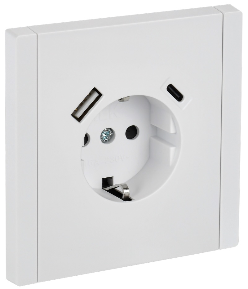 Розетка электрическая + USB А+А, 3, 1 А FORTEPIANO, USB type-A 5V, двойная, цвет - белый