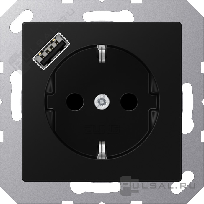 Розетка USB A с электрической розеткой A VIVA, A creation, A 550, A flow, USB type-A 5V, Электр. с USB, одинарная, цвет - черный матовый