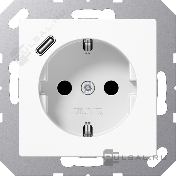 Розетка USB C с электрической розеткой A VIVA, A creation, A 550, A flow, AS 500, USB type-C 5V, Электр. с USB, одинарная, цвет - белый