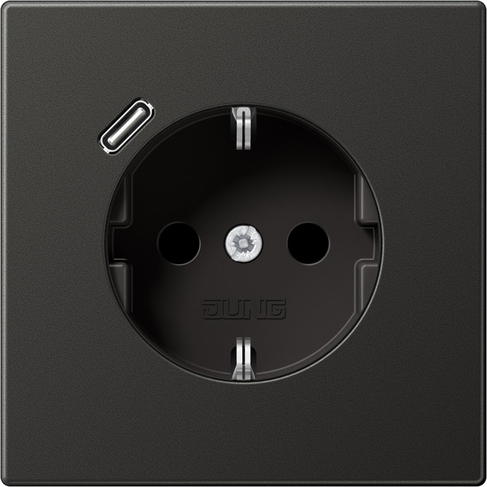 Розетка USB C с электрической розеткой LS 990, LS-design, FD-design, USB type-C 5V, Электр. с USB, одинарная, цвет - антрацит